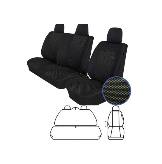 Mallikohtainen istuinsuojasarja 2+1 istuimille Väri: Musta