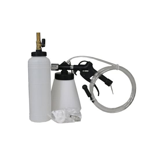 Työpaine 6 - 12 bar Ilmankulutus 180 l/min Ilmaliitäntä 1/4" Säiliön tilavuus 0,75 l / 1 litra Mukana adapterit Nopea, puhdas ja tehokas toiminta yhden henkilön suorittamana. Nestettä voi vetää ulos jarrunipasta, mikä mahdollistaa jarrujen ilmauksen tai koko jarrunesteen vaihdon.