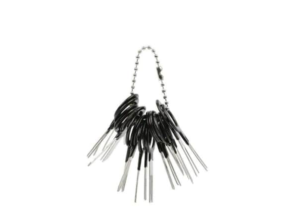 Kätevä sarja liittimien irroitukseen. Työkalun avulla saat liittimet purettua vahingoittamatta niitä. Sarjassa 38 osaa.
