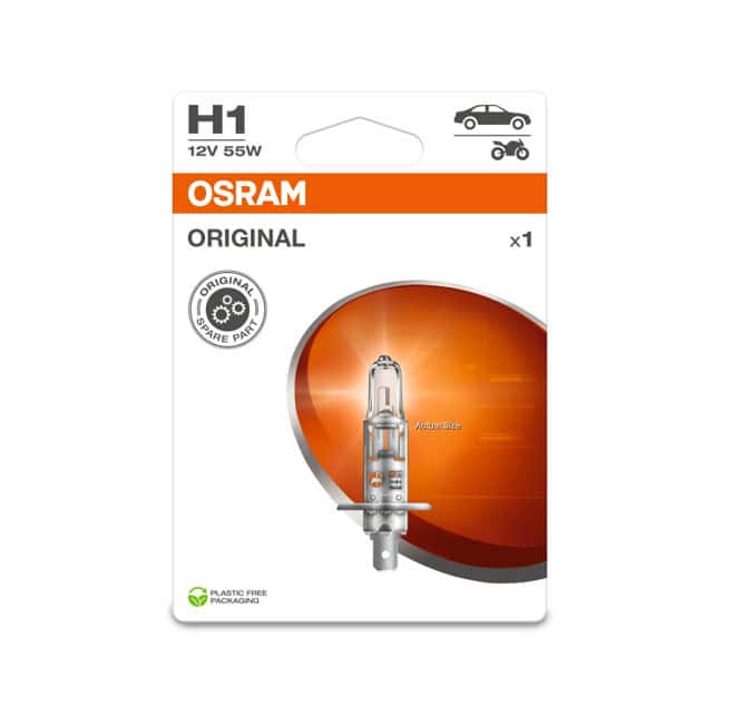 Laadukas Osram Original H1 polttimo. Lamppumalli: H1 Jännite [V]: 12 V Nimellisteho [W]: 55 W Hehkulampun kantamalli: P14.5s Pakkaustyyppi: Kuplapakkaus Määrä: 1